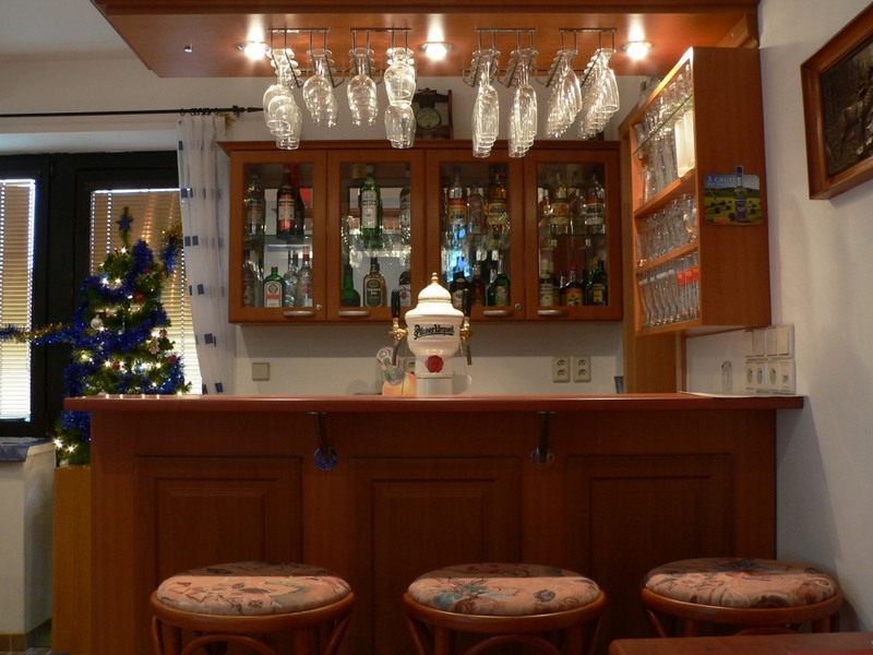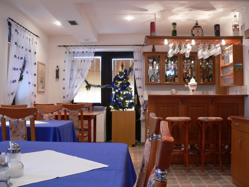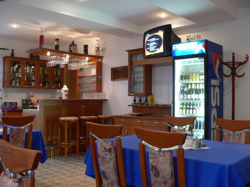 K posezení lze využít stylový salonek nebo společenskou místnost s barevným televizorem, barem a výčepem, která slouží při dlouhodobém pobytu klientů také jako jídelna pro podávání snídaní, nebo jiné formy stravování.