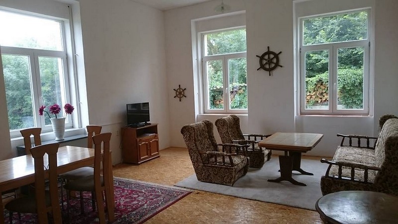 Kapacita domu je 18 osob ve 3 apartmánech. Objekt je v provozu duben - říjen a jde o rekonstruovanou školu z první republiky. Dispozice: Dům má v přízemí 1 apartmán, v 1.patře jsou 2 apartmány. Celý dům je ideální pro jednu větší skupinu například 3 známé rodiny. Každý apartmán je zcela oddělený včt měření elektrické energie a el bojleru 120 l. Rozloha každé jednotky je cca 80 m2 a kapacita 6 osob. Samozřejmostí je vlastní sociální příslušenství (2xWC a sprcha), kuchyň s myčkou nádobí, WiFi a TV. Zahrada je společná pro celý objekt s rozlohou přes 2000 m2, k dispozici je venkovní ohniště, venkovní „retro“ sprcha se slunečním ohřevem. Volných míst k parkování je dostatek a také pergola pro 2 auta. Apartmán c.1- přízemí: má 4 ložnice 1x 3 lůžka, 2x 2 lůžka, 1x 1 lůžko /8 lůžek /, samostatná kuchyň s ledničkou/mrazák, myčka 12 souprav, el sporák. Obývák spojeny s jídelnou pro 6 osob, sedací souprava, krbová kamna, přímotop a TV. 2 x koupelna se sprchovým koutem 2 x WC /1x samostatné/ 1x pračka. Apartmán c.2- 1.patro pro 6 osob ve 2 ložnicích po 3 lůžkách. Obývací pokoj s krbem, TV s jídelní a kuchyňskou zónou, myčka 12 souprav, lednička/mrazák. 2x samostatné WC, 1 koupelna se sprchovým koutem, 2x umyvadlem , prackou. Apartmán c.3 -1.patro má 2 ložnice 2 x 2 lůžka, a 1 x 2 lůžko v obýváku, a 2 lůžka na palandě. Samostatná kuchyň s ledničkou/mrazák, myčka 12 soupr., el dvouplotna s troubou a mikrovlna. Obývák spojeny s jídelnou pro 6 osob, sedací souprava, krbová kamna, el akumulačky, a TV. 2 x WC /1x samostatné /, sprchový kout, umyvadlo s galerkou. Parkování na oploceném pozemku pro 2 -5 aut, příjezd bez problémů. Stravování - vlastní za využití kuchyně, nebo restaurace 9 km Louny, Libochovice. Každý apartmán je možno vytápět krbovými kamny + el. přímotopy. |
