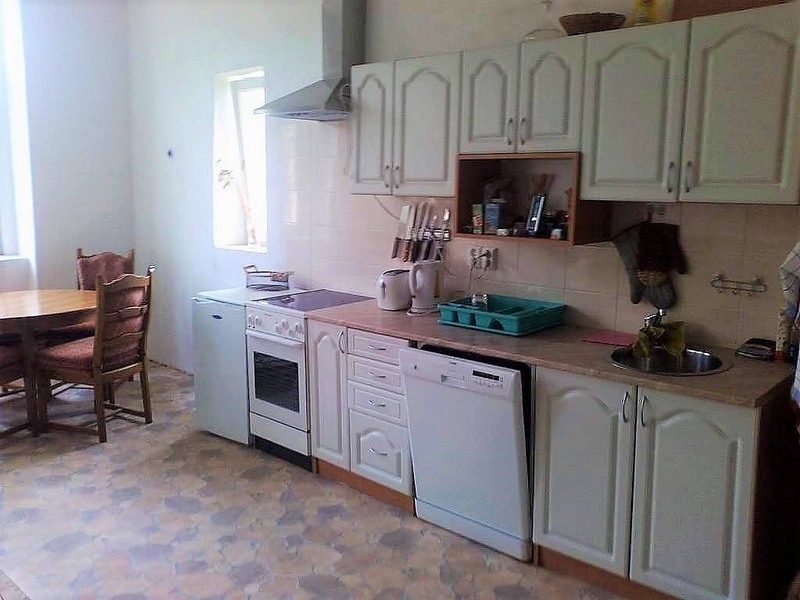Kapacita domu je 18 osob ve 3 apartmánech. Objekt je v provozu duben - říjen a jde o rekonstruovanou školu z první republiky. Dispozice: Dům má v přízemí 1 apartmán, v 1.patře jsou 2 apartmány. Celý dům je ideální pro jednu větší skupinu například 3 známé rodiny. Každý apartmán je zcela oddělený včt měření elektrické energie a el bojleru 120 l. Rozloha každé jednotky je cca 80 m2 a kapacita 6 osob. Samozřejmostí je vlastní sociální příslušenství (2xWC a sprcha), kuchyň s myčkou nádobí, WiFi a TV. Zahrada je společná pro celý objekt s rozlohou přes 2000 m2, k dispozici je venkovní ohniště, venkovní „retro“ sprcha se slunečním ohřevem. Volných míst k parkování je dostatek a také pergola pro 2 auta. Apartmán c.1- přízemí: má 4 ložnice 1x 3 lůžka, 2x 2 lůžka, 1x 1 lůžko /8 lůžek /, samostatná kuchyň s ledničkou/mrazák, myčka 12 souprav, el sporák. Obývák spojeny s jídelnou pro 6 osob, sedací souprava, krbová kamna, přímotop a TV. 2 x koupelna se sprchovým koutem 2 x WC /1x samostatné/ 1x pračka. Apartmán c.2- 1.patro pro 6 osob ve 2 ložnicích po 3 lůžkách. Obývací pokoj s krbem, TV s jídelní a kuchyňskou zónou, myčka 12 souprav, lednička/mrazák. 2x samostatné WC, 1 koupelna se sprchovým koutem, 2x umyvadlem , prackou. Apartmán c.3 -1.patro má 2 ložnice 2 x 2 lůžka, a 1 x 2 lůžko v obýváku, a 2 lůžka na palandě. Samostatná kuchyň s ledničkou/mrazák, myčka 12 soupr., el dvouplotna s troubou a mikrovlna. Obývák spojeny s jídelnou pro 6 osob, sedací souprava, krbová kamna, el akumulačky, a TV. 2 x WC /1x samostatné /, sprchový kout, umyvadlo s galerkou. Parkování na oploceném pozemku pro 2 -5 aut, příjezd bez problémů. Stravování - vlastní za využití kuchyně, nebo restaurace 9 km Louny, Libochovice. Každý apartmán je možno vytápět krbovými kamny + el. přímotopy. |